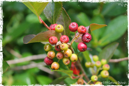 The edible park was originally designed with 5-7 vegetation layers, but today is mostly a canopy layer of fruit and nut trees with ground cover underneath in the main area. Hardy kiwi, fig trees, elderberry, strawberries and other newer plantings can be found along the walkway down to the main older section. Succession was planned for with the design. The site is a great example of the differences between a shadier, denser planting that mimics a mature forest with less understory growth compared to the forest edges with brambles and increased species.