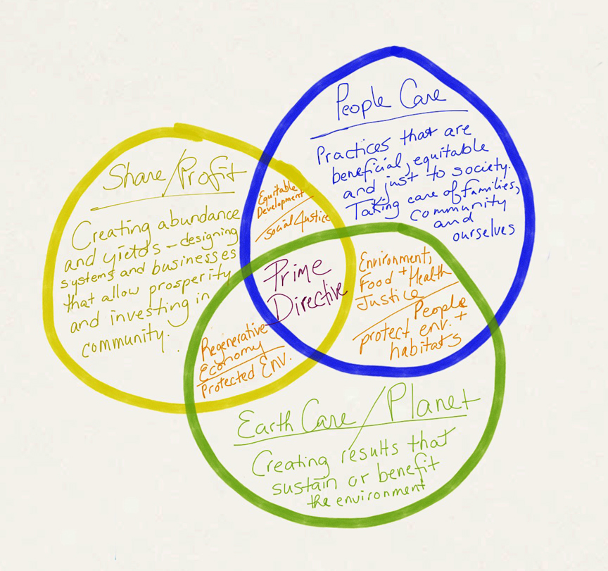 In a nutshell- permaculture is a decision-making system guided by values/ethics of taking care of the Earth, People and Fare Share.